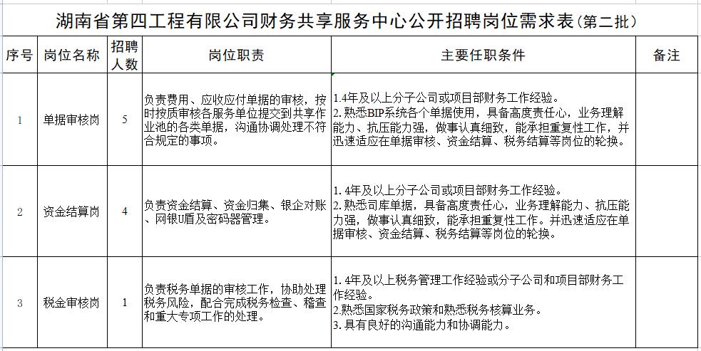 湖南建投四建集團有限公司財務(wù)共享服務(wù)中心(第二批)工作人員招聘公告