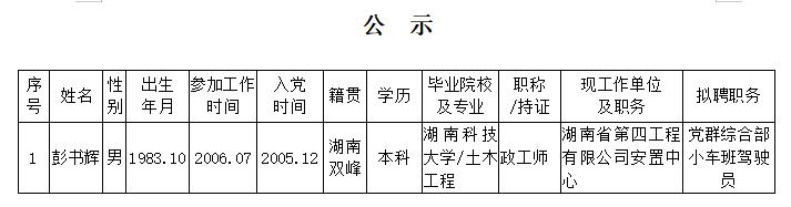 為了加強(qiáng)對(duì)干部選拔工作的監(jiān)督,提高識(shí)別和任用干部的準(zhǔn)確程度,公司按照2025年3月12日發(fā)布的《湖南建投四建集團(tuán)有限公司公開招聘公告》的要求,開展了公開招聘工作。現(xiàn)根據(jù)招聘結(jié)果,經(jīng)公司研究,決定對(duì)彭書輝同志擬任職務(wù)進(jìn)行任前公示。