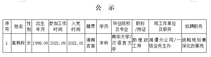 為了加強對干部選拔工作的監(jiān)督,提高識別和任用干部的準確程度,公司按照2025年3月24日發(fā)布的《湖南建投四建集團有限公司公開招聘公告》的要求,開展了公開招聘工作。現(xiàn)根據(jù)招聘結(jié)果,經(jīng)公司研究決定對高楓秋同志擬任職務(wù)進行任前公示。