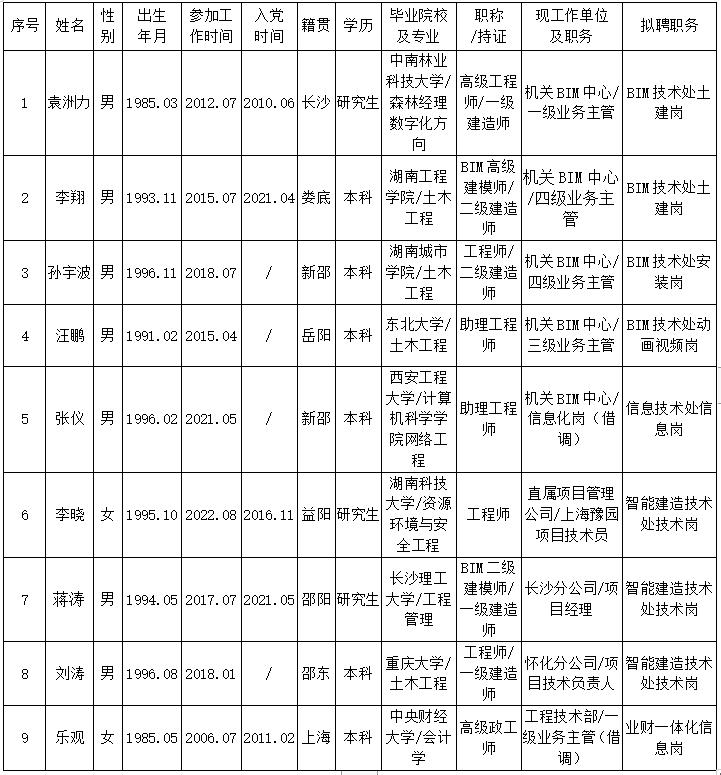 為了加強對干部選拔工作的監(jiān)督,提高識別和任用干部的準確程度,公司按照2025年4月21日發(fā)布的《湖南建投四建集團有限公司公開招聘公告》的要求,開展了公開招聘工作。現(xiàn)根據(jù)招聘結(jié)果,經(jīng)公司研究決定對袁洲力等9名同志擬任職務(wù)進行任前公示。